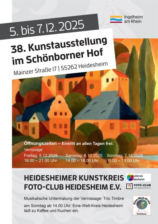 Zusammen mit dem Kunstkreis Heidesheim richteten wir auch 2025 wieder eine Kunstausstellung aus. Das Interesse war großartig. Wir bedanken uns bei allen Besuchern! Wer die Ausstellung nicht sehen konnte oder sich die Bilder noch einmal ansehen möchte, kann das über nachfolgenden Link: Kunstausstellung 2025